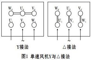 1.單速風(fēng)機(jī)接線方法:一般情況下,所配電機(jī)功率在4KW以下為Y接法;4KW以上(包括4KW)為△接 法。接線圖如圖1所示:
