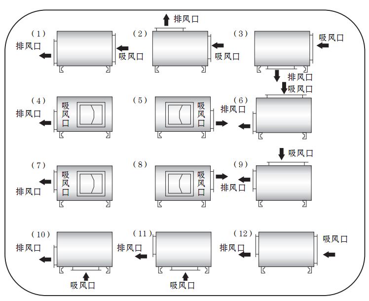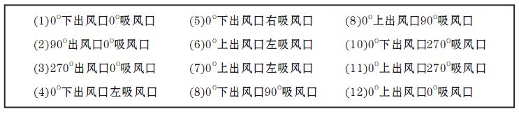 注:訂貨時(shí)還應(yīng)注明風(fēng)機(jī)的進(jìn)出風(fēng)口位置編號(hào),出風(fēng)口位置編號(hào),詳見風(fēng)柜進(jìn)、出風(fēng)口對(duì)照表。